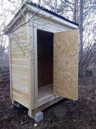 Простой и практичный хозблок душ, общий размер 1000*2000 мм. Прекрасный вариант недорого садового душа для владельцев дач и садовых домов. Внутренняя обшивка водостойкими плитами OSB. Небольшое глухое окно 40х40 обеспечивает необходимое освещение помещения.