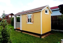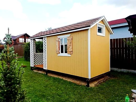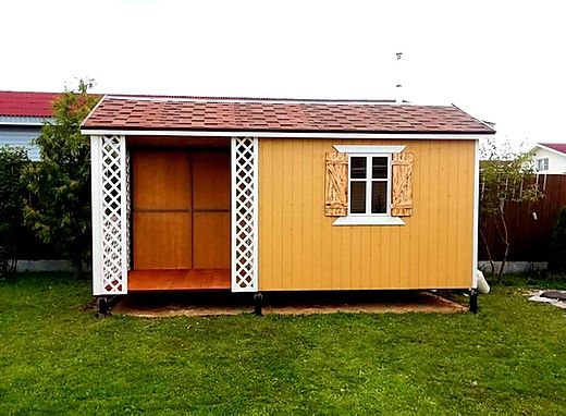 Изготовили, доставили и установили деревянную бытовку в летнем варианте с верандой в Дзержинский район.