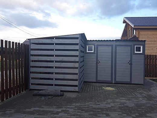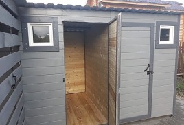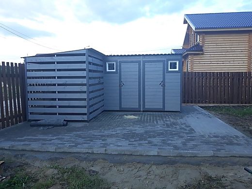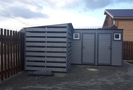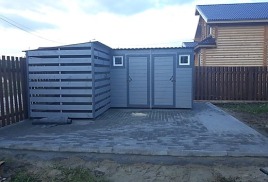 Хозблок многофункциональный - угловой. Состоит из туалета, душевая, дровника.
